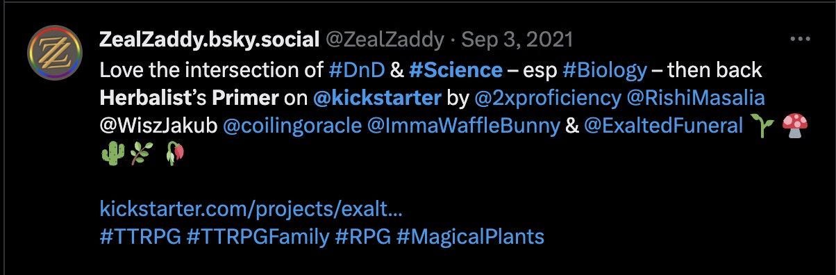 I’ve never been a part of a Kickstarter before, let along one this successful. It was awesome. The project raised $814,806 across 18,725 backers. … Let that sink in for a second. We hit our initial goal of $10,000 in literally 15 minutes of the launch, we unlocked “Science Editing” another twenty minutes after that. We landed on the Kickstarter “Projects we love” page. While all credit goes to Anna and the Exalted Funeral team, I will never match this in eyeballs on something I’ve helped write or edit. Herblist’s Primer may be the coolest thing I’ve ever worked on.