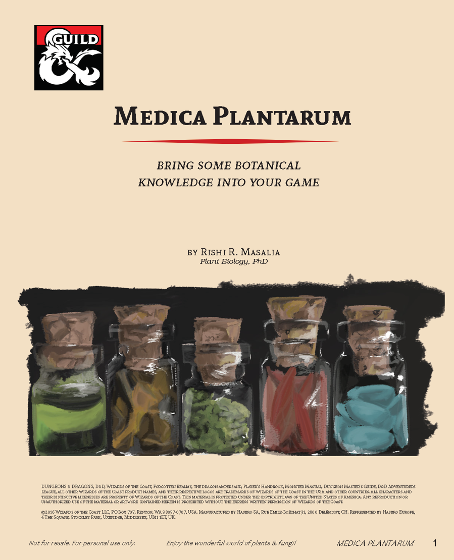 As a proper nerd, I am obsessed with Dungeons & Dragons. Given that it’s my favorite hobby, I wanted to bring some real botanical knowledge into game. I developed (“homebrewed”) an herbalism system based on herbal plants talking about the science, folklore, and myth surrounding them. Medica Plantarum was published for free on DM’s guild and to date has been downloaded over 5,000 times.
